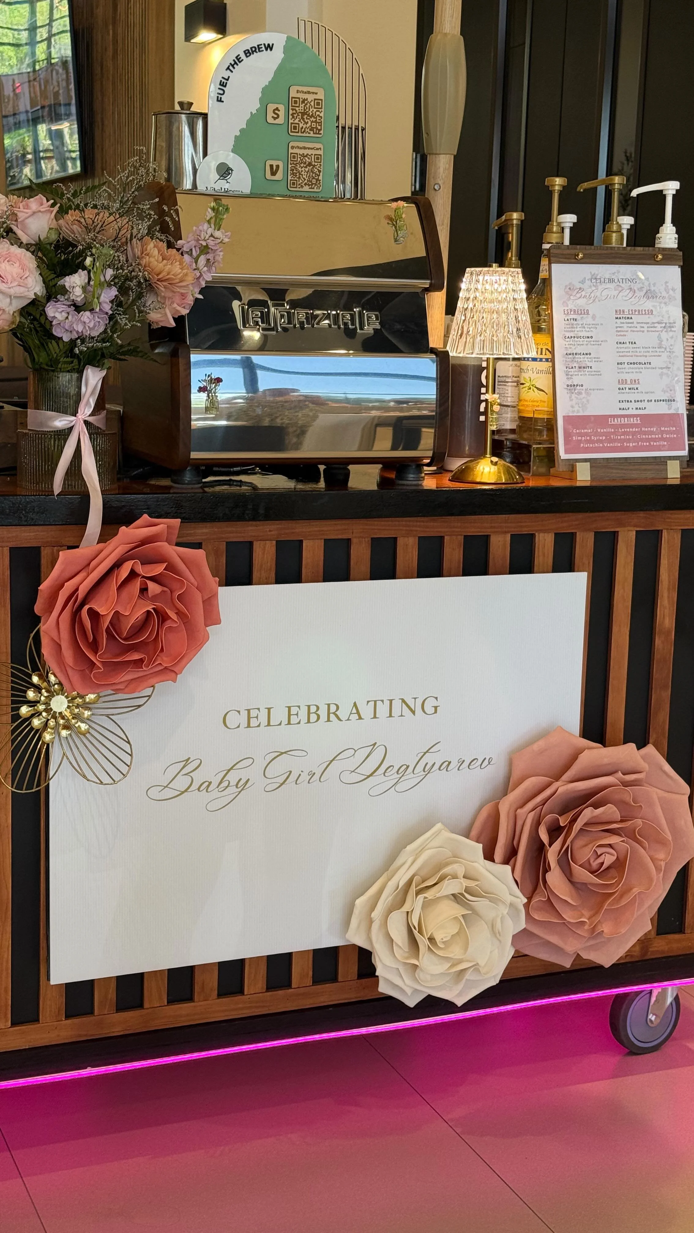 Our mobile coffee cart is small but mighty and capable of catering indoors and outdoors.