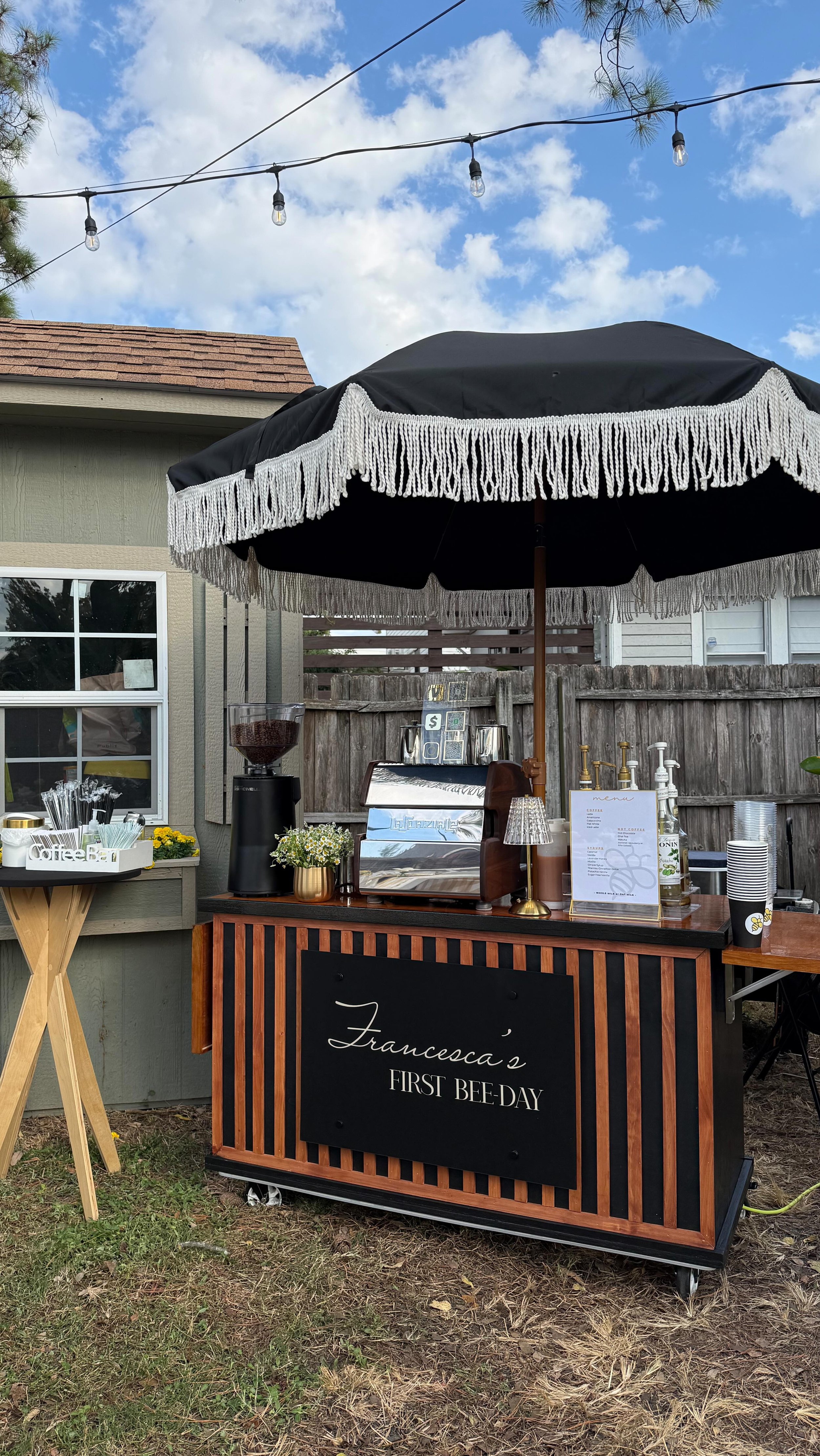 Our mobile coffee cart is small but mighty and capable of catering indoors and outdoors.